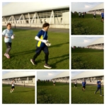 ウォーミングアップの中でバランス技を取り入れ、バランス感覚を養いながら、