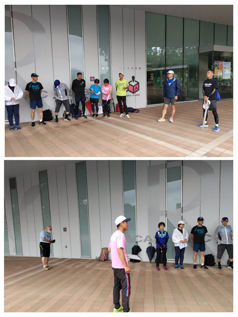 ①お昼過ぎから雨が本降りになるあいにくの天候でしたが、立正大学での練習会に17名の参加がありました。