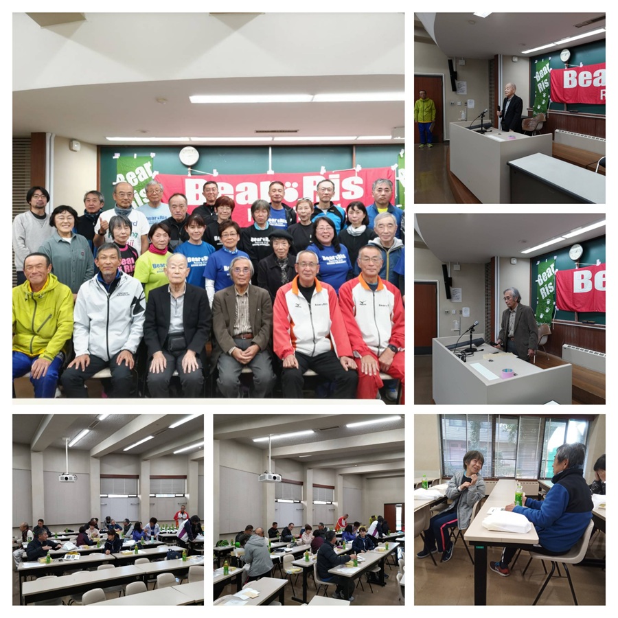 この日発刊された会報誌「ベアリスランニングクラブ16年間の歩み」を手にしながらメンバー同士歓談しました。山地、山西両顧問もおいでになり、挨拶を頂戴した後、参加メンバー一人一人がそれぞれのランニングライフやベアリスランニングクラブへの思いを語りました。メンバー一人一人の熱い思いと協力体制が、12月27日からスタートする「ランニングスクール熊文」へと受け継がれていきます。