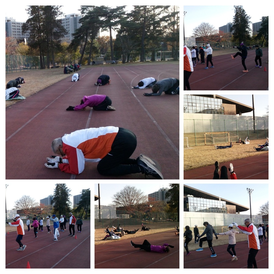 ①強風が吹き荒れた前日の天候から一転、穏やかな冬晴れとなったこの日、立正大学での練習会に22名の参加がありました。